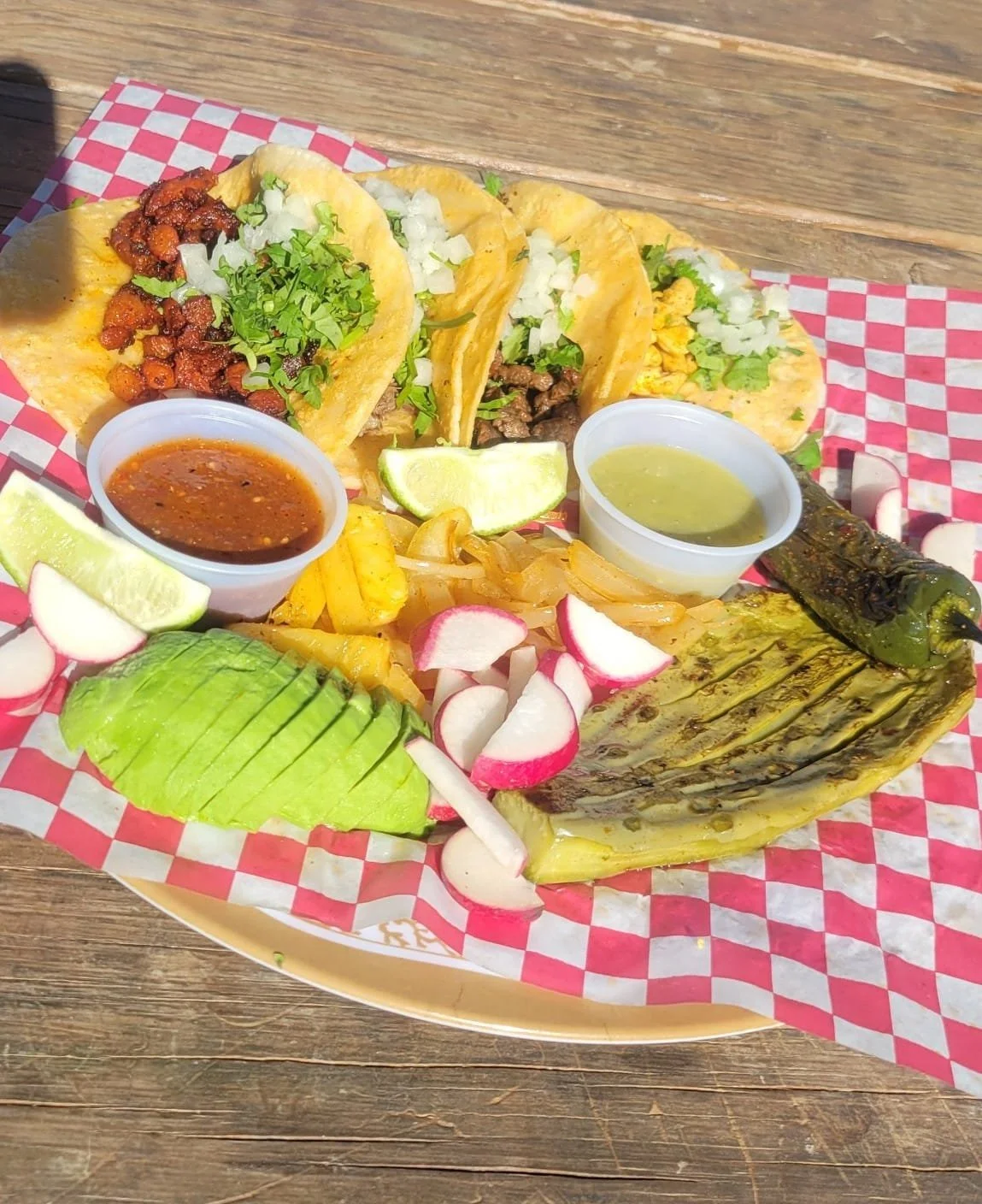 They have picnic tables, umbrellas (to provide shade on those hot summer days), games, etc. so you can sit and enjoy your street food with your friends, family, or coworkers. We have live music on some weekend evenings!